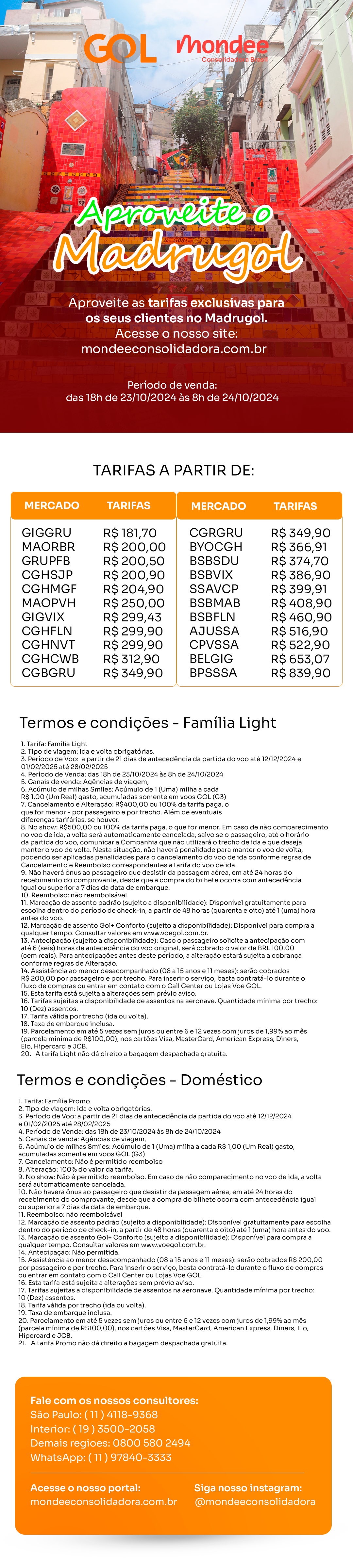 GOL: Aproveite as tarifas exclusivas para os seus clientes no Madrugol.